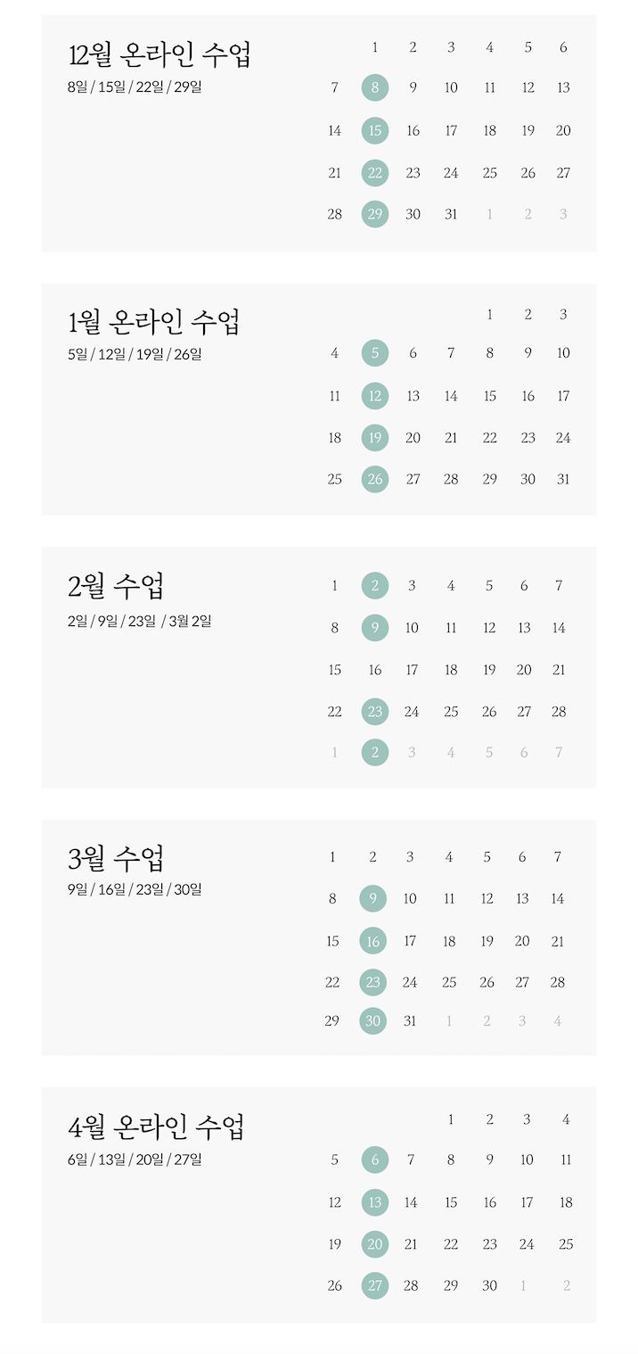 - 신청한 수업일정을 꼭 확인해주세요 :)