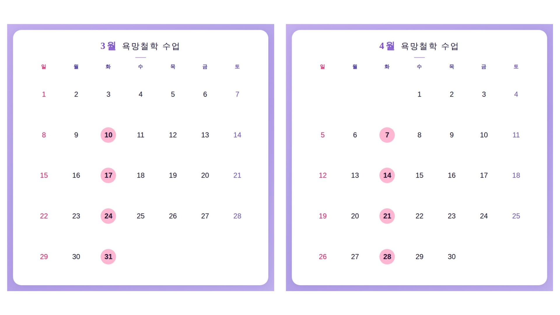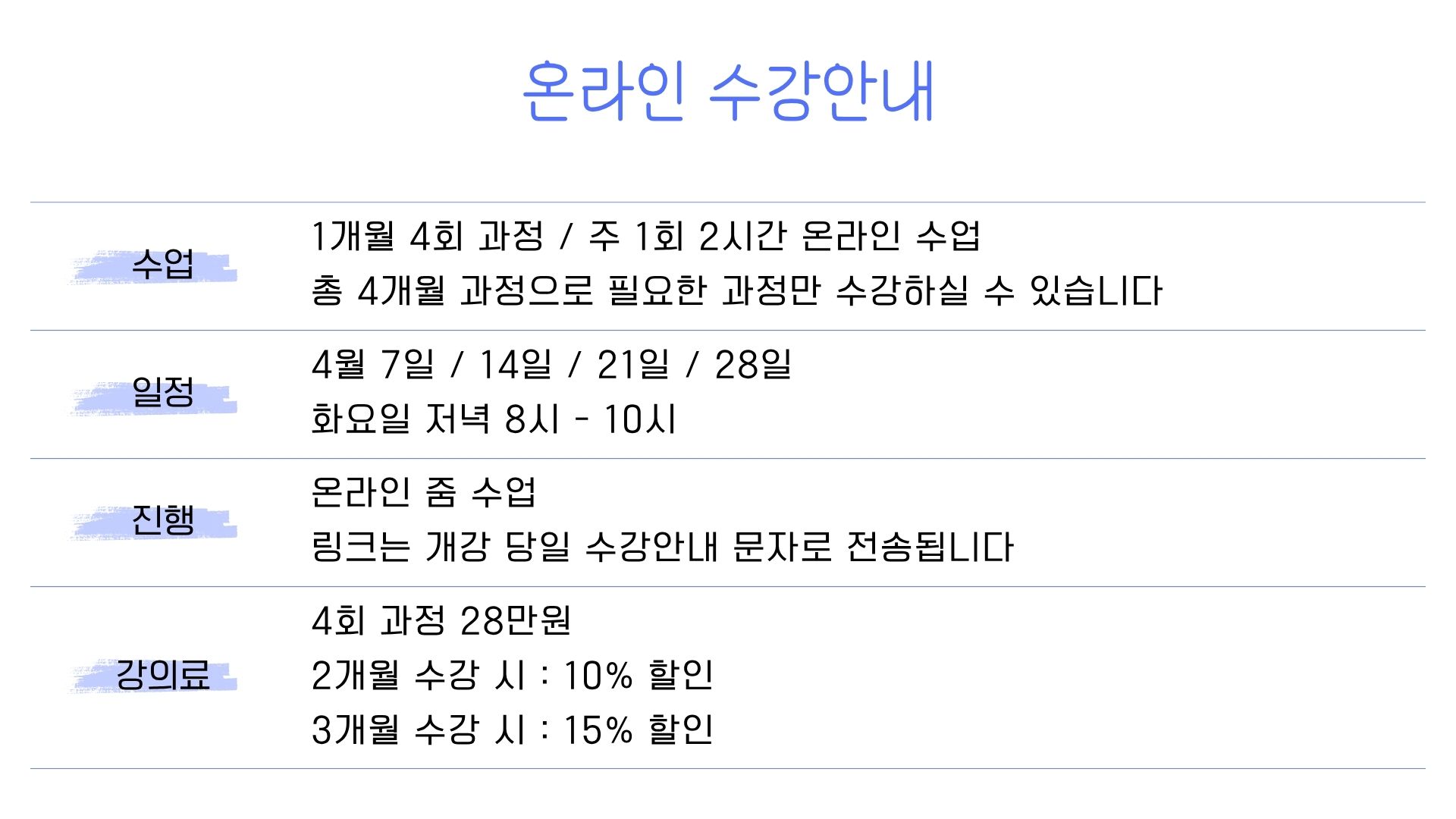 - 신청한 수업일정을 꼭 확인해주세요 :)